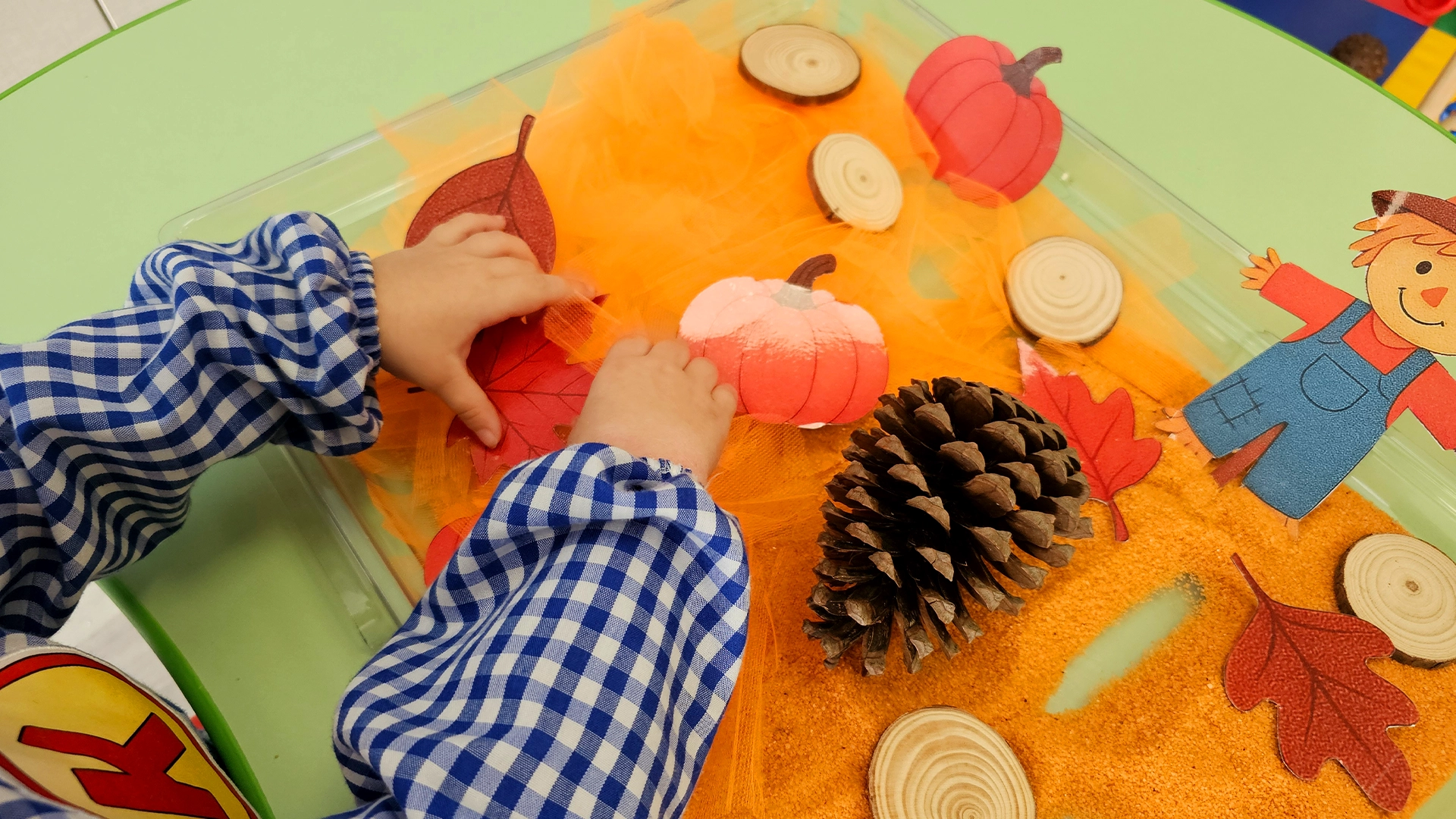 En Escuela Infantil Kekos hemos preparado una bandeja sensorial otoñal pensada para que los niños y niñas puedan descubrir el otoño a través del juego, el tacto y la observación.